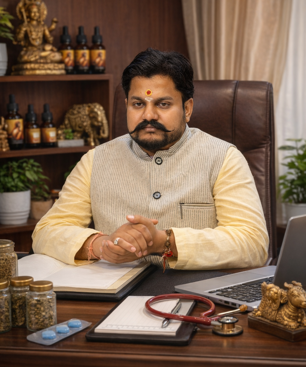 Led by Dr. Navneet Sharma (BAMS, MD – Rasashastra), we deliver personalized consultations and research-informed Ayurvedic formulations—discreetly, ethically, and effectively.
